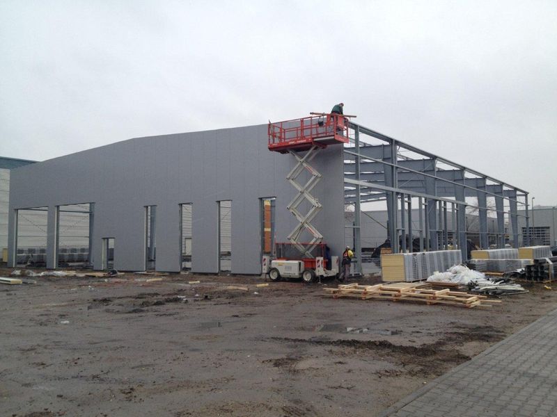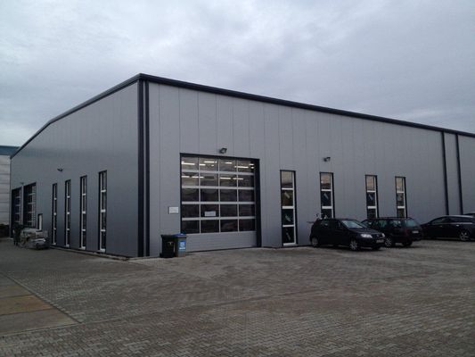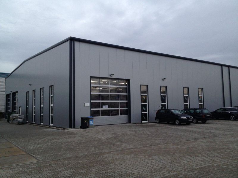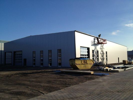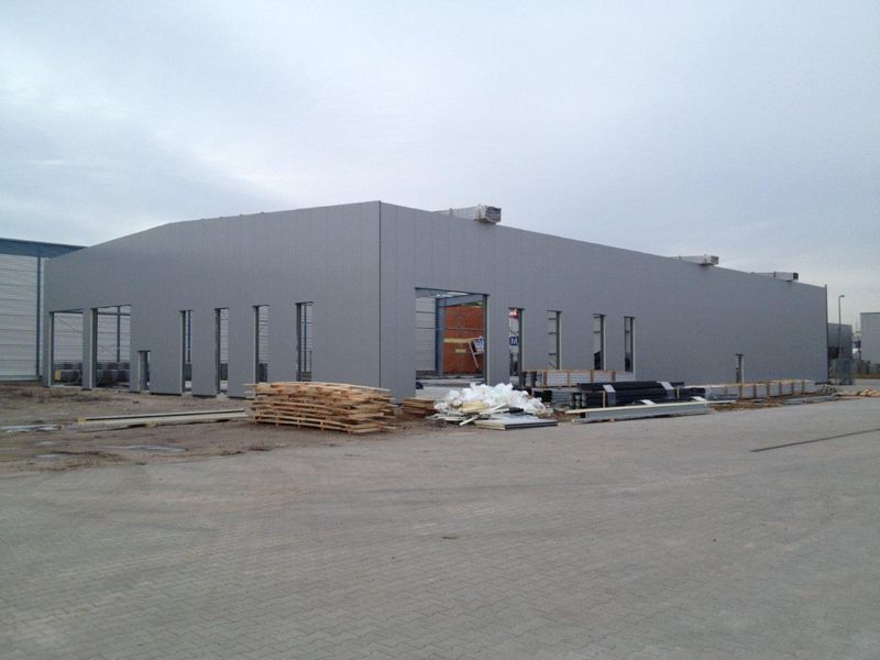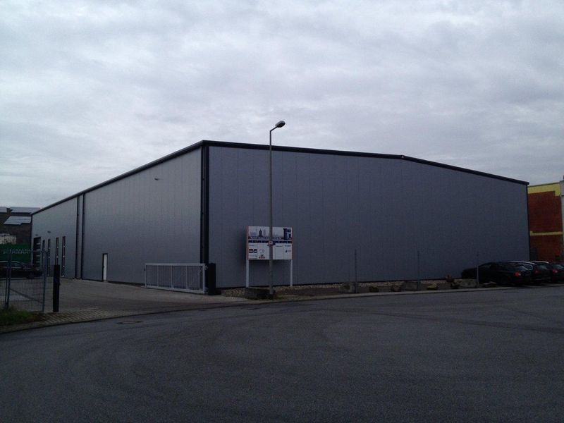 Die Fassade und das Dach besteht aus gedämmten Sandwich Elementen welche in ihrer Struktur und Farbgebung