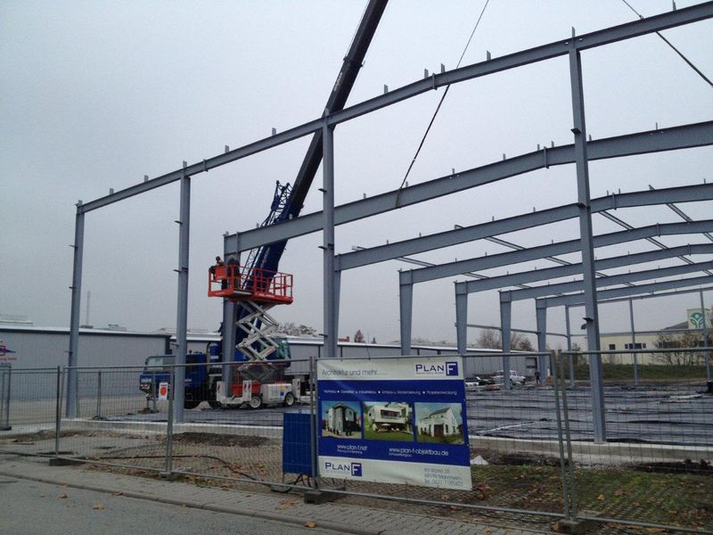 Neubau einer gedämmten Lager- / Produktionshalle in Mannheim-Friesenheimer-Insel.