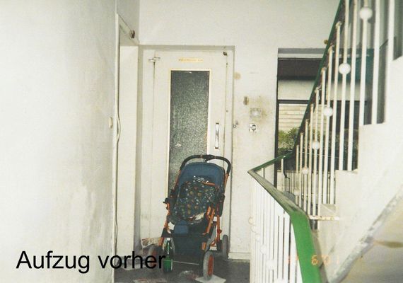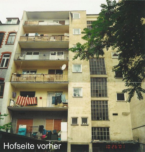 Hier wurde eine großzügige Wohnung über das komplette Geschoss realisiert und mit einem neu angehängten Stahlbalkon mit Blick auf den Wasserturm versehen.